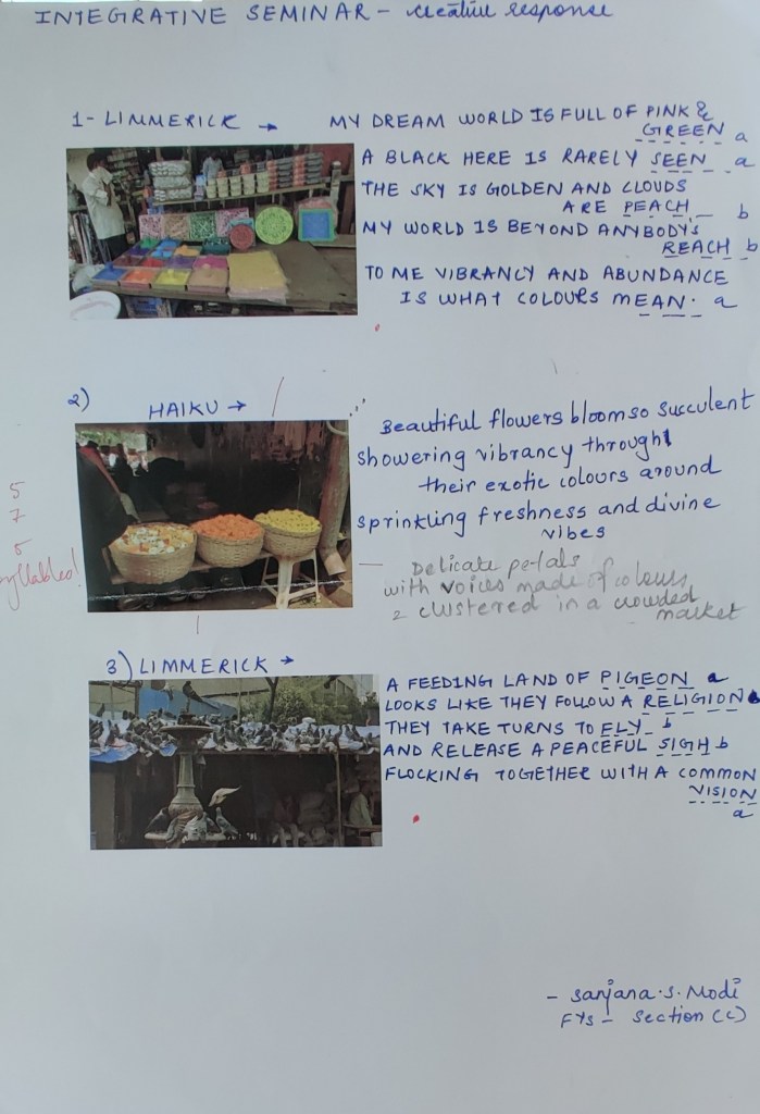 The place of visit for our group was ‘Dadar market and Kabootar khana ‘, my group members are: Anoushka, Elaine, Geetika and Srushti