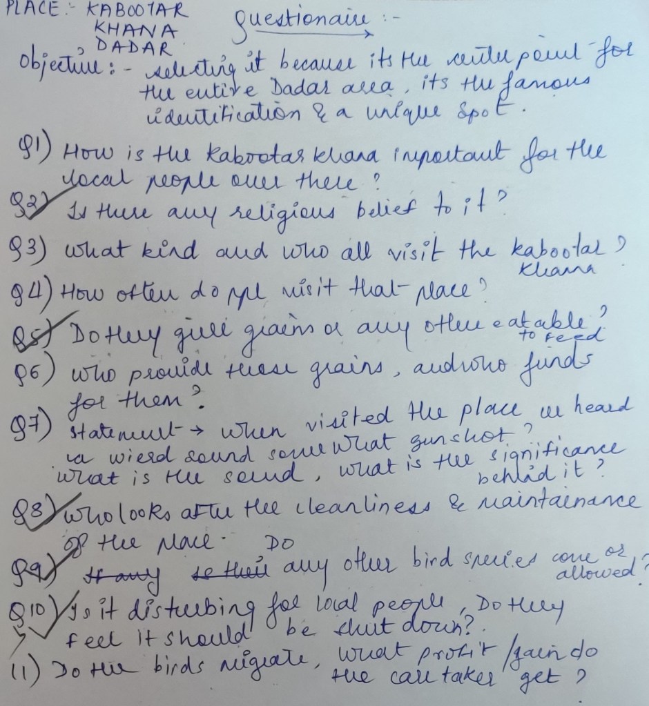 We had to interview the local people in our next visit hence we had to observe and frame a set of few unique, different and unusual questions which we would interview the local people in our next visit and know more about the place.