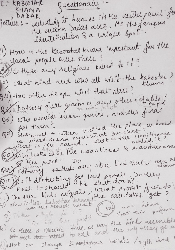 We also had our questionnaire reviewed from ma’am , we made few changes in the questions , ma’am selected a few for our final interview and also told us to add a few more questions to our questionnaire.