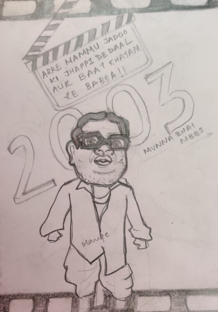 my zine was about Bollywood in which I chose Baburao character from the famous Bollywood movie Phir hera Pheri where he in different timelines bollywood’s superhit movie, playing the character of that movie with the same costumes but delivering the dialogue in his very own style.