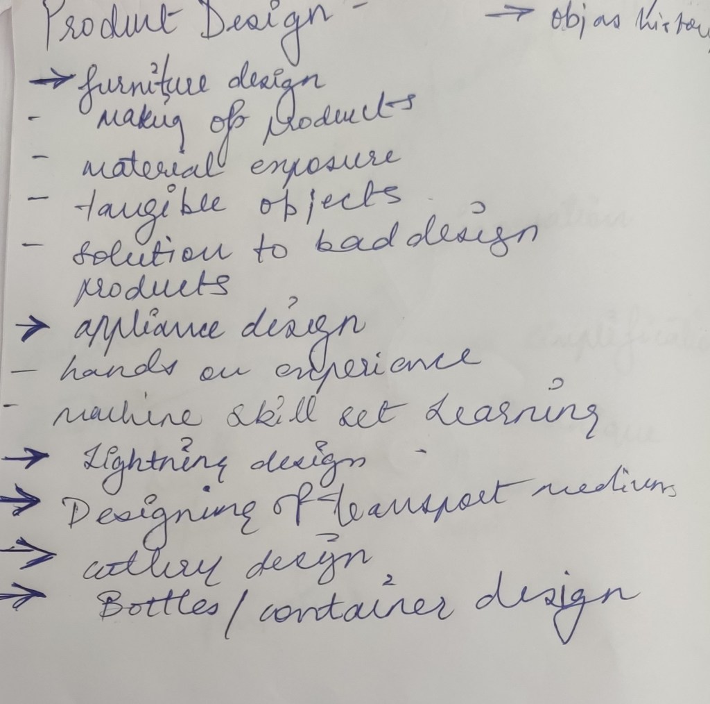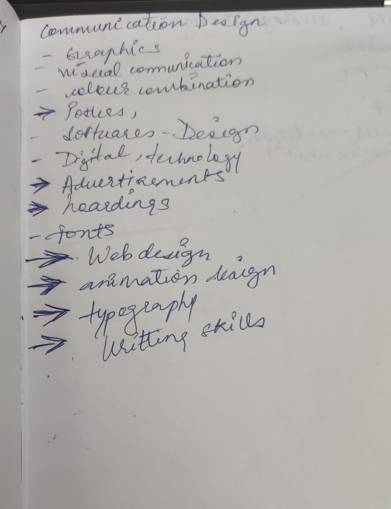 We had to take the 3 disciplines in order of preference which we would like to study further and list down the categories as well as elements of that category, eg: PRODUCT DESIGN- elements will be the further sub streams like furniture e design , appliance design, and the elemnts foor furniture design would be wood ,material , texture etc.