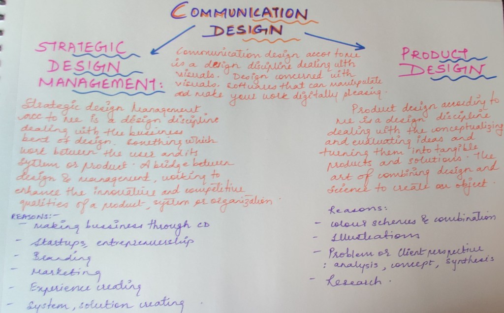 I chose communication design as my main discipline and listed down all the various categories which falls under the same.