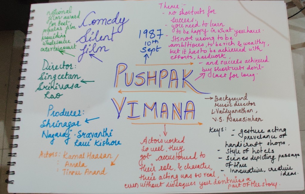The mind map which I made was on the film Pushpak