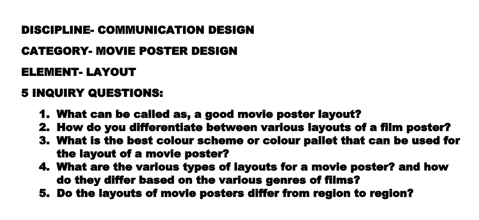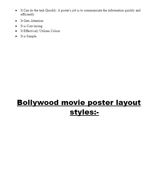 My research was on types of layouts, layouts specifically for bollywood movies , and basics of what layouts are, what all is included while designing the layout for a movie poster.